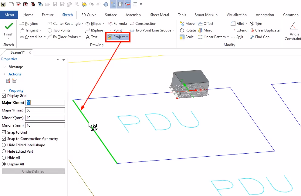 It is also possible to project lines from the reference file onto a sketch plane. On existing models, go down to the IntelliShape level below the Partner and right-click. There, select Edit Cross Section. You can also lay out blank sketches and project over selected lines to it.