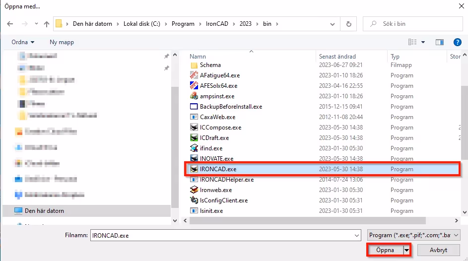 When you now double-click on a IRONCAD file, the correct version of IRONCAD should be started. If the above does not work and for example 3D files are still associated with Outlook Calendar files, you can follow the next step as this method works both for the Outlook Calendar problem and if *.stp files are associated with COMPOSE.