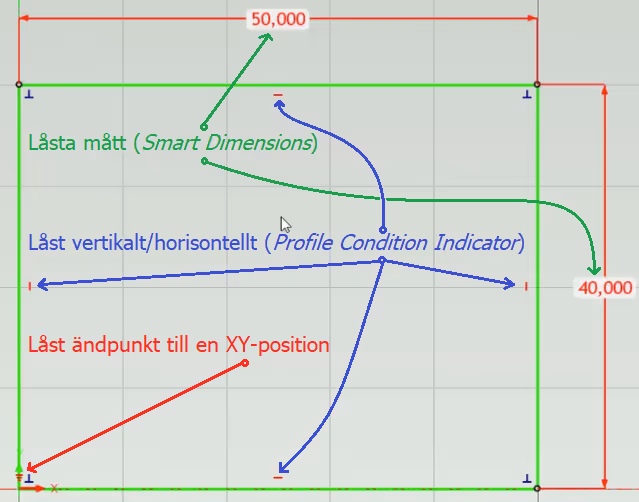 Here is an example of combining the freedom of Shape handles with lines managed via red locked Smart Dimensions (Constraint Dimensions) or with blue unlocked Smart Dimensions (Reference Dimensions) and why this is a useful and flexible combination.