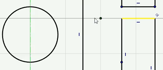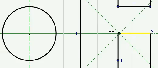 IronCAD was early to develop a feature for the sketch called SmartCursor, which means that the mouse pointer and the selected object work together to find interesting information in its vicinity. This is shown by green dashed lines appearing around the cursor, e.g. when dragging an endpoint or a line.