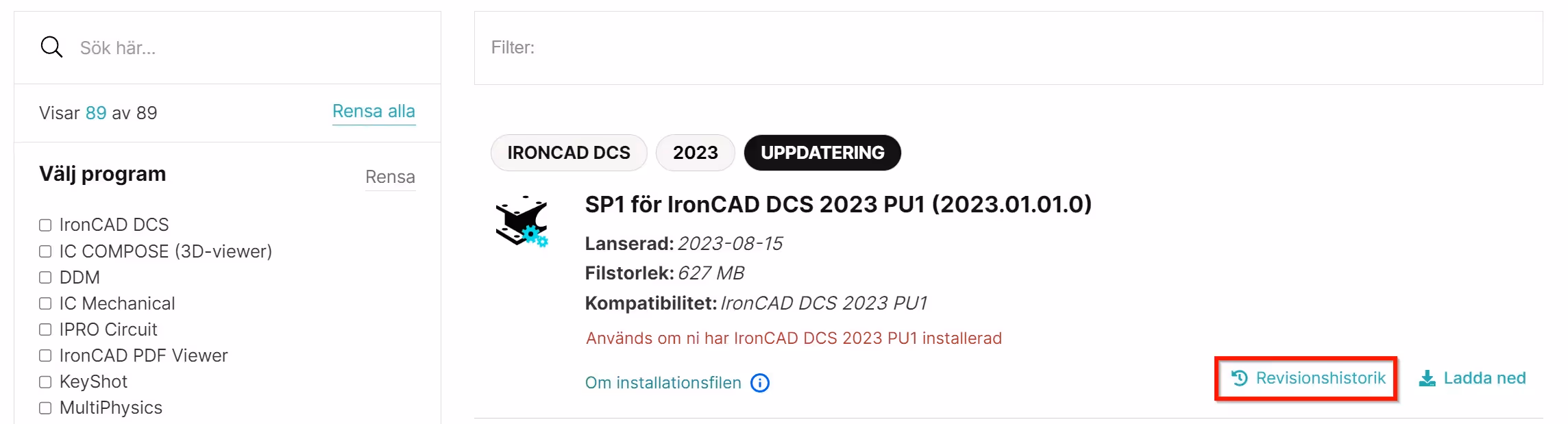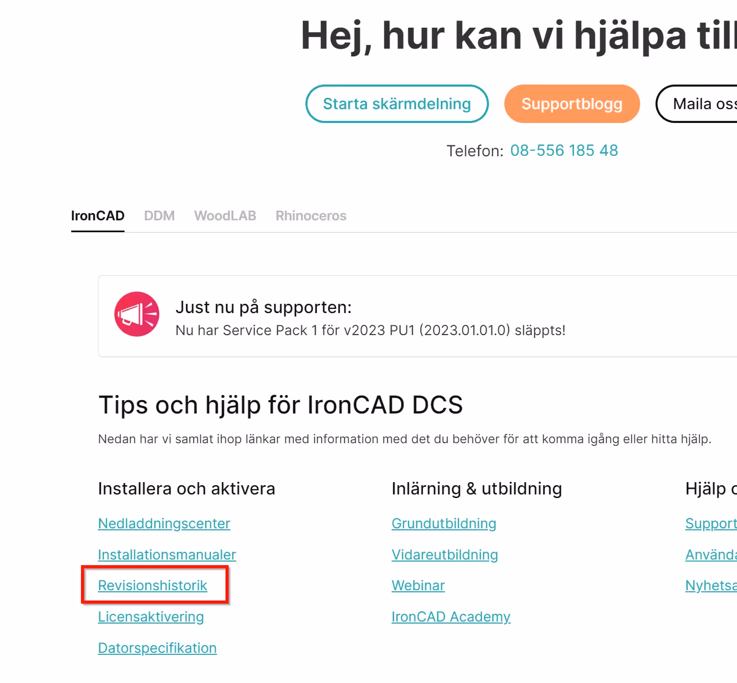 It may not always be easy to keep track of all the editions of the IRONCAD and which number to look for and the order in which an update should be installed. To make it easier for your users, we have now produced a "living" table with explanations of what names and numbers mean and a list of revision history for IronCAD DCS and all its updates. The list can now be found both from the Download Center under each version of IronCAD DCS...