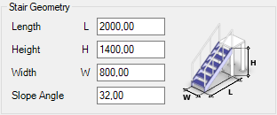 In this case, the Length parameter (for the profile) does not correspond to the length of the staircase, but is used to calculate the hypotenuse between the Length (L) and Height (H) of the staircase.