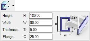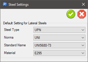 When you choose to use your own steel profiles, a drop-down button appears for selecting the profile, and a button for setting the size is also displayed.