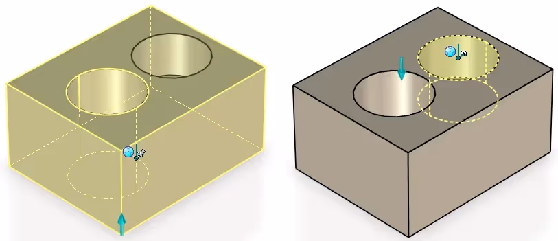 A question that we sometimes get on training courses is what is the difference between drawing "a hole" directly in the sketch for a positive block compared to drawing a new H Cylinder, i.e. adding a new negative extrusion as a separate feature?