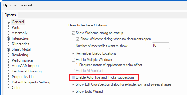 Question: How do you turn off the display of Tips & Tricks messages that appear at the bottom right of the program when you run certain commands and tools?