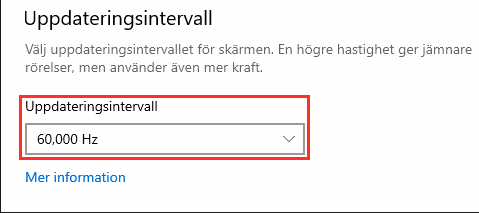 At the bottom, you will find the Refresh rate interval for the monitor frequency. Change it to 60 Hz.